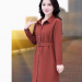 翻领斜纹磨毛中长款连衣裙女士2025年春季新款打底内搭妈妈款裙子