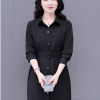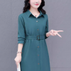 翻领斜纹磨毛中长款连衣裙女士2025年春季新款打底内搭妈妈款裙子 蓝色 xl